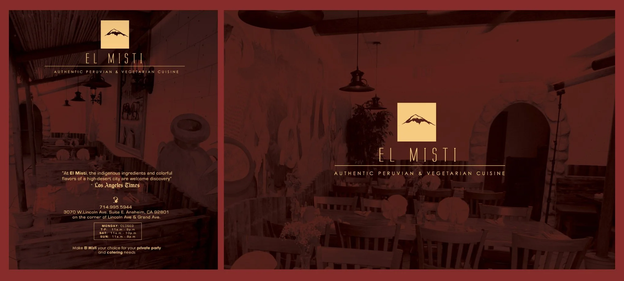 Authentic Peruvian Southern California family restaurant serving the community for over 15 years. El Misti brings an exquisite culinary dining experience from the rich flavors of Peru. El Misit is an exclusive type of restaurant bringing health conscious indigenous flavors from Peru, taking you on a nostalgic journey to experience the very best of all regions of Peru.